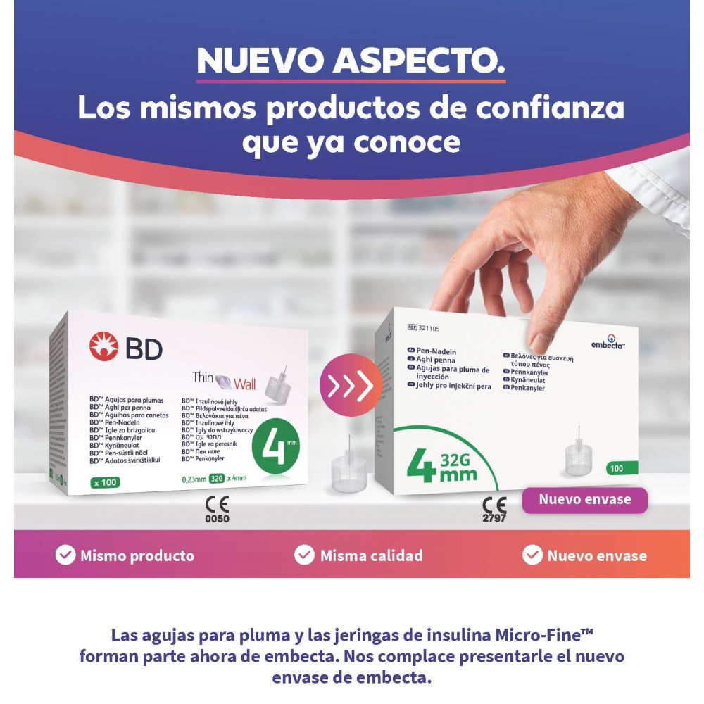 Cubiertas con un lubricante especial llamado Micro-Bonded para hacer más cómoda la inyección.